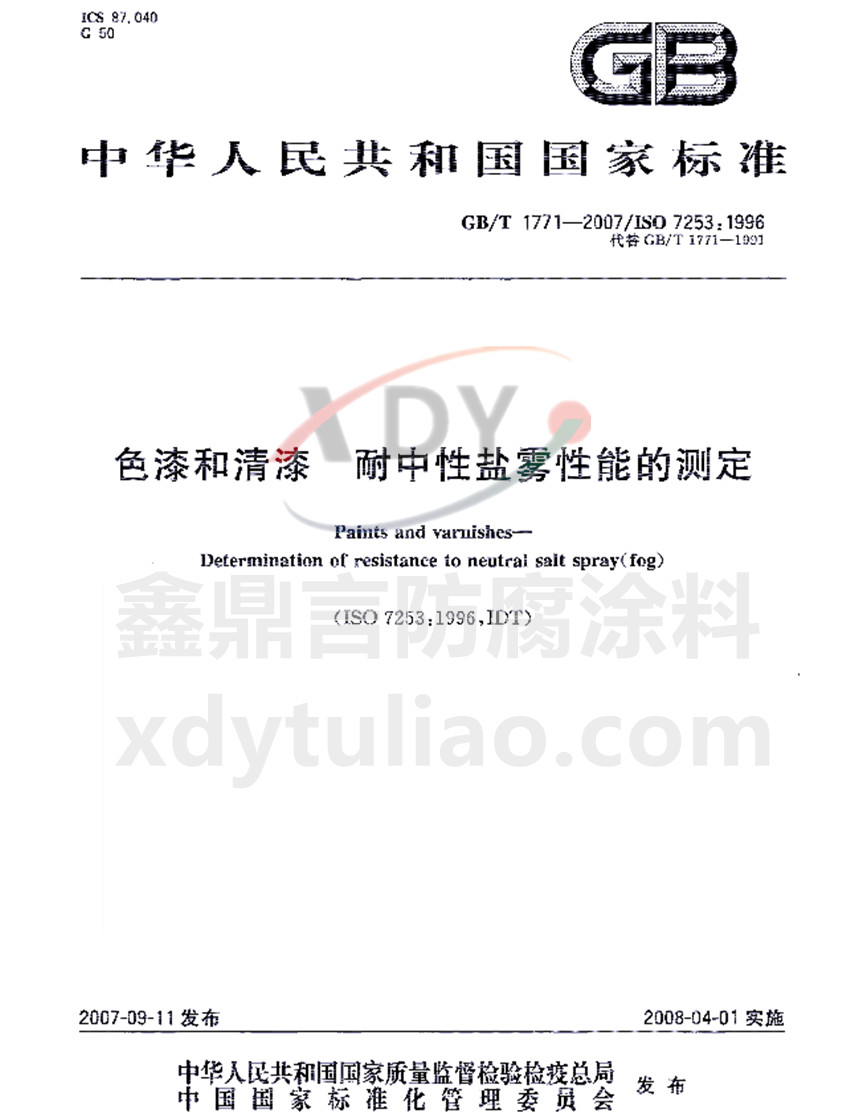 GB/T 1771-2007色漆和清漆 耐中性鹽霧性能的測(cè)定標(biāo)準(zhǔn)是照搬GB/T1771-2007《色漆和清漆 耐中性鹽霧性能的測(cè)定》紙質(zhì)版內(nèi)容。大家可以放心參考。