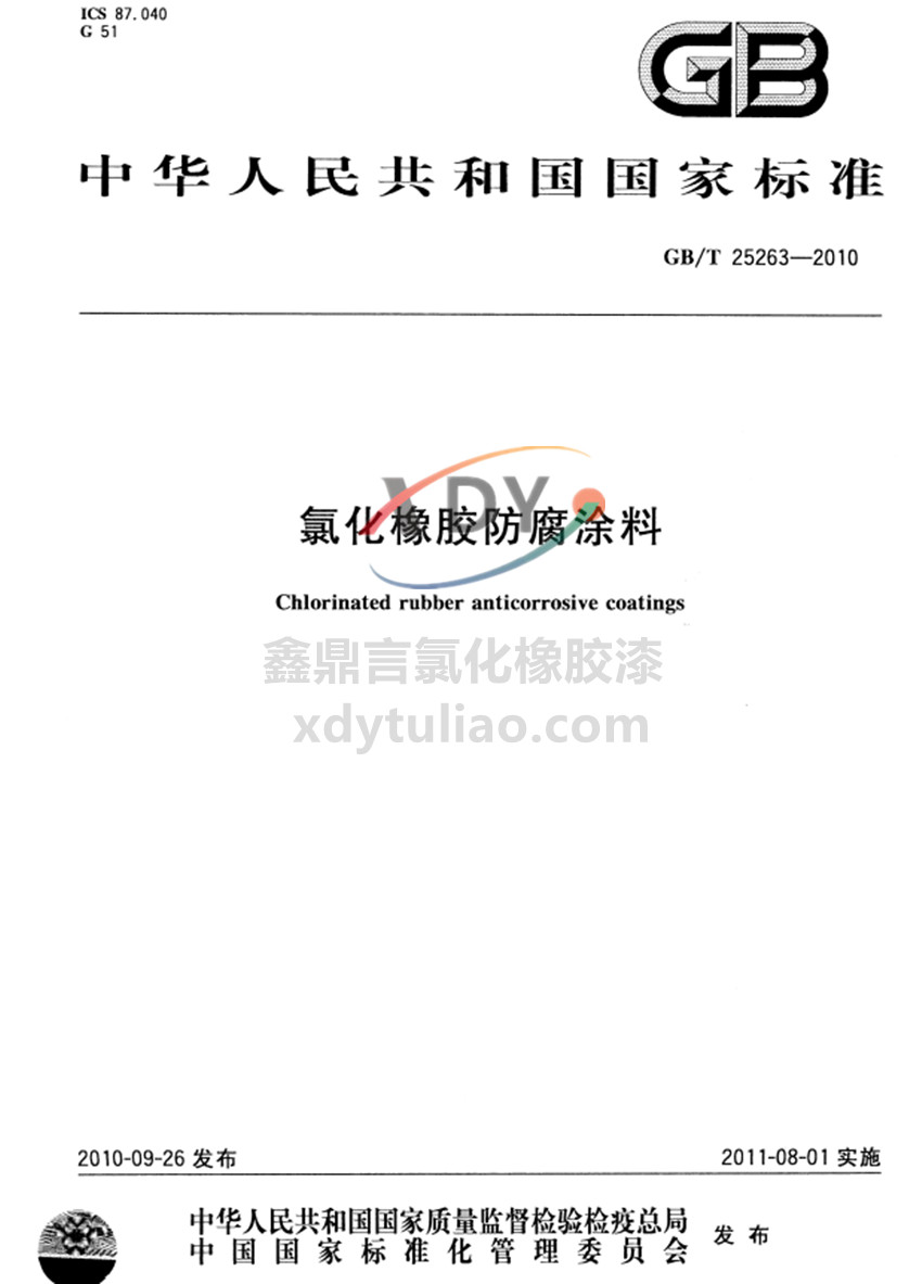 氯化橡膠防腐涂料國家標準GB/T 25263-2010