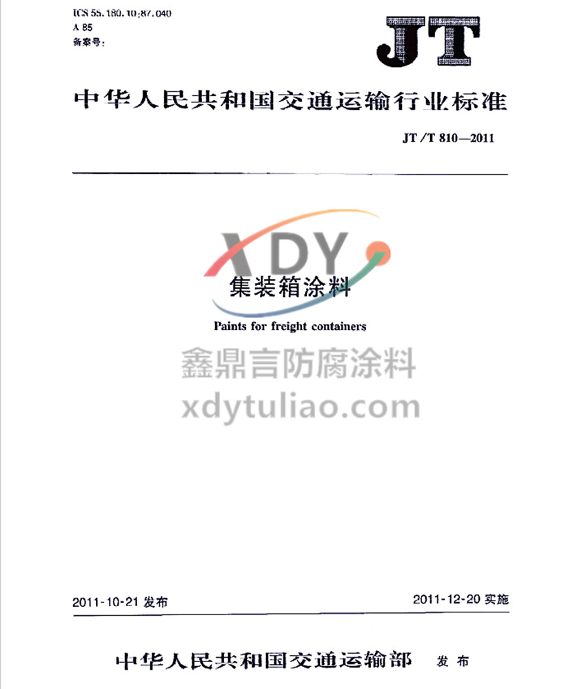 集裝箱涂料交通運輸行業(yè)標準JT/T 810-2011