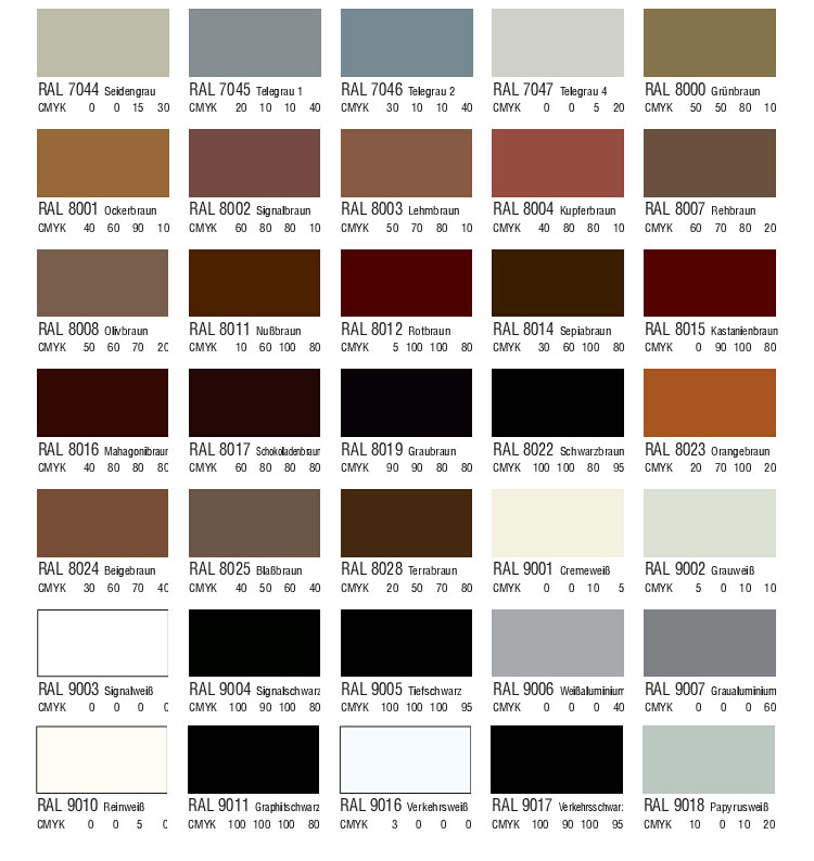 勞爾RAL色卡顏色多樣,由四位數(shù)字組成的編號(hào)命名,如ral9006、ral7035等,這種色卡在國(guó)際上廣泛通用,防腐漆選色中最常用的色卡之一。防腐漆選色中,常用的為RAL-K7色卡。